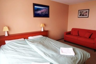 A larger upstairs room with glorious mountain views. A king bed or 2 single beds plus sofa.