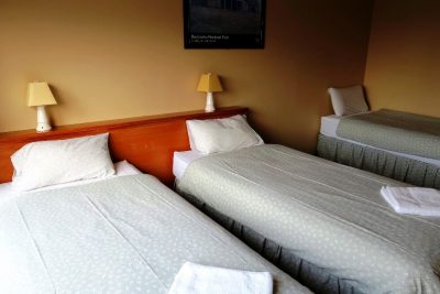 A standard room with views. A king bed and a single bed or 3 single beds.